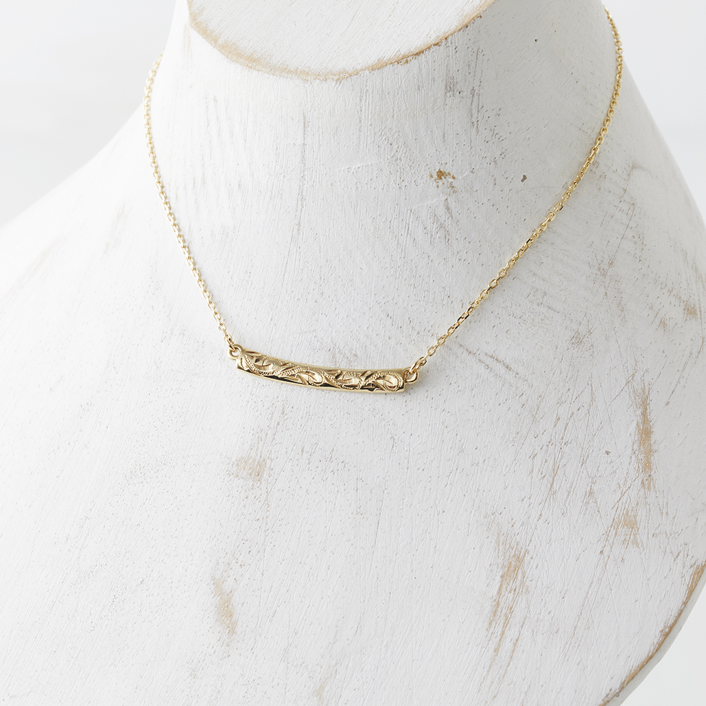 プレート部分には、ハワイアンジュエリーならではのスクロール(波柄)がデザインされており、