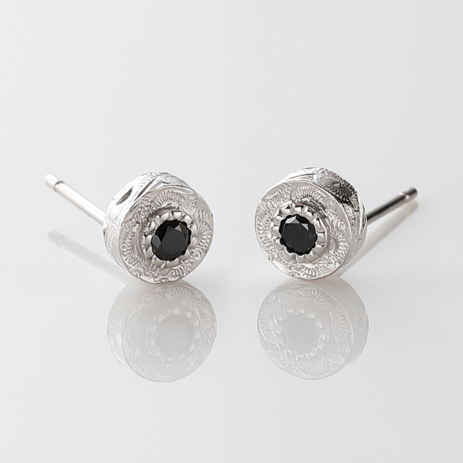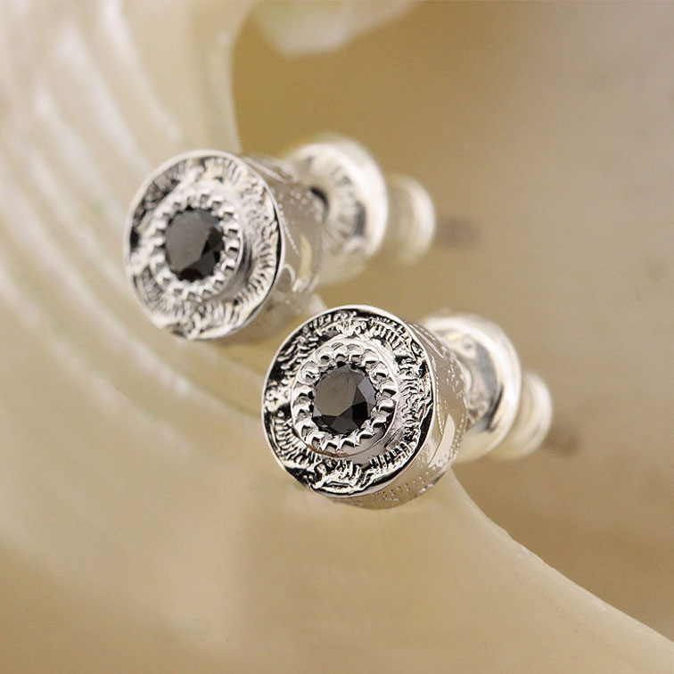 0.05ctの天然ブラックダイヤモンドをセッティングしたラウンド型シルバーピアスは、