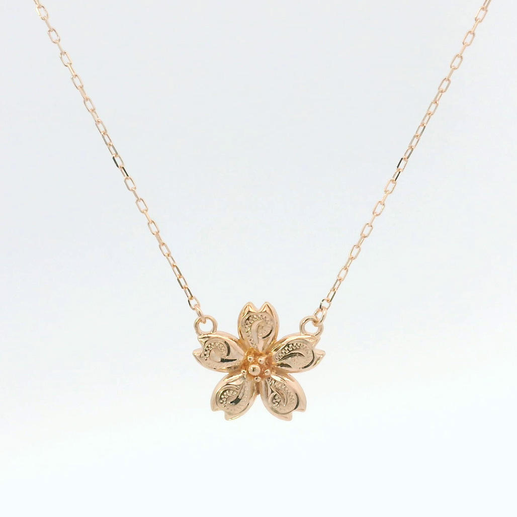 日本の心・桜とハワイアンジュエリーの融合K10ピンクゴールドの桜ネックレス