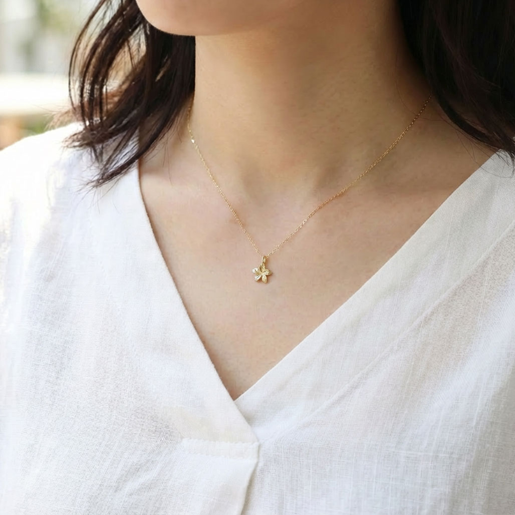 モチーフは、直径わずか8mmの小ぶりなプルメリア。