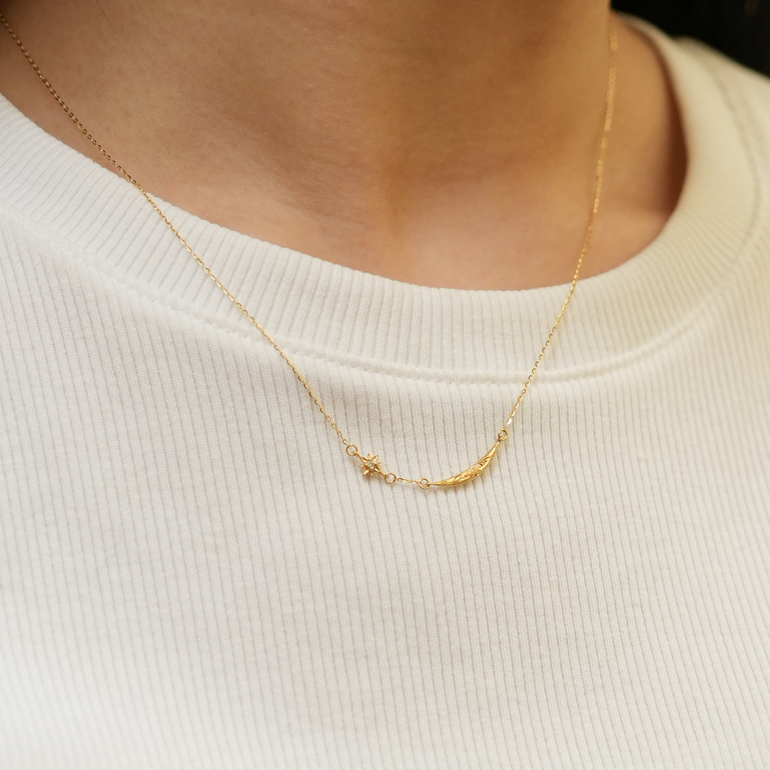 静かな新月の始まりと、星が導く希望の光のK18イエローゴールドネックレス