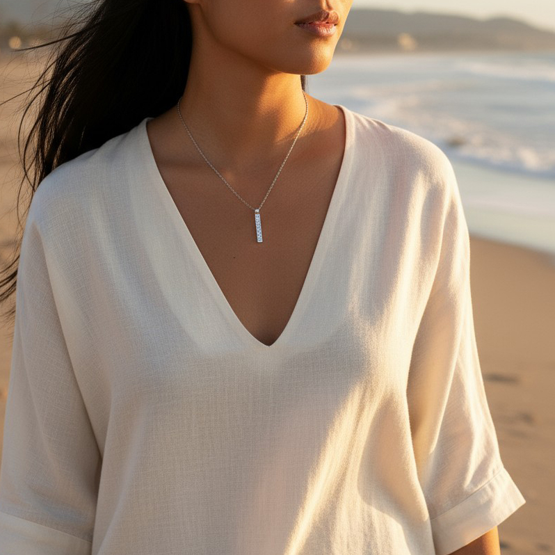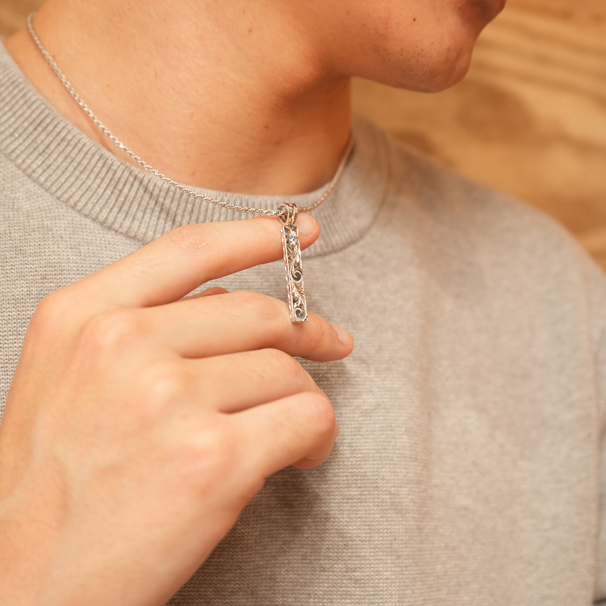 Tシャツやシャツの胸元からさりげなくのぞかせても、フォーマルな装いに合わせても映える万能な一本。