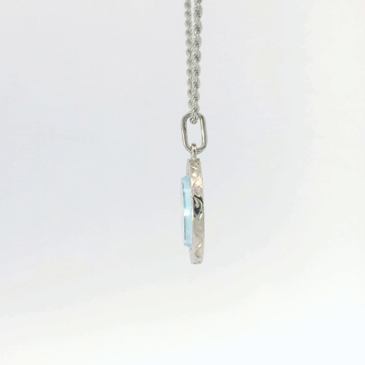 ブルートパーズが映す、海と光のきらめき、透かし模様と手彫りが織りなす三重奏のオーバルペンダント