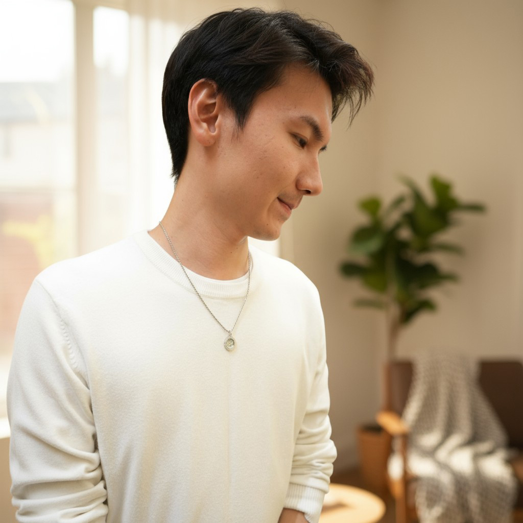 「SVカイアオペンダント」は、ハンドメイドの温もりと自然がもたらす光の美しさが融合した特別なジュエリー。