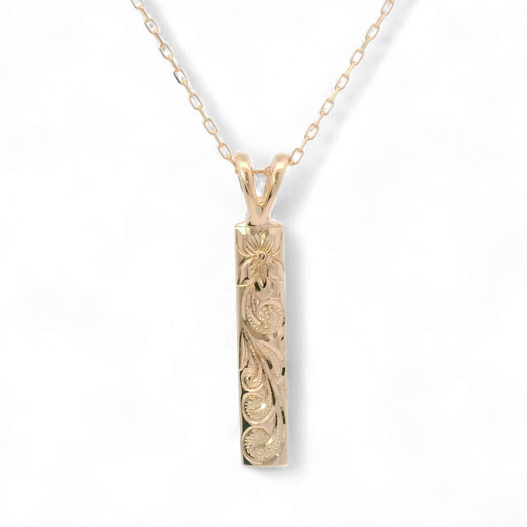 K10ピンクゴールドの輝きに、丁寧に彫り込まれたプルメリアが咲き誇るペンダント