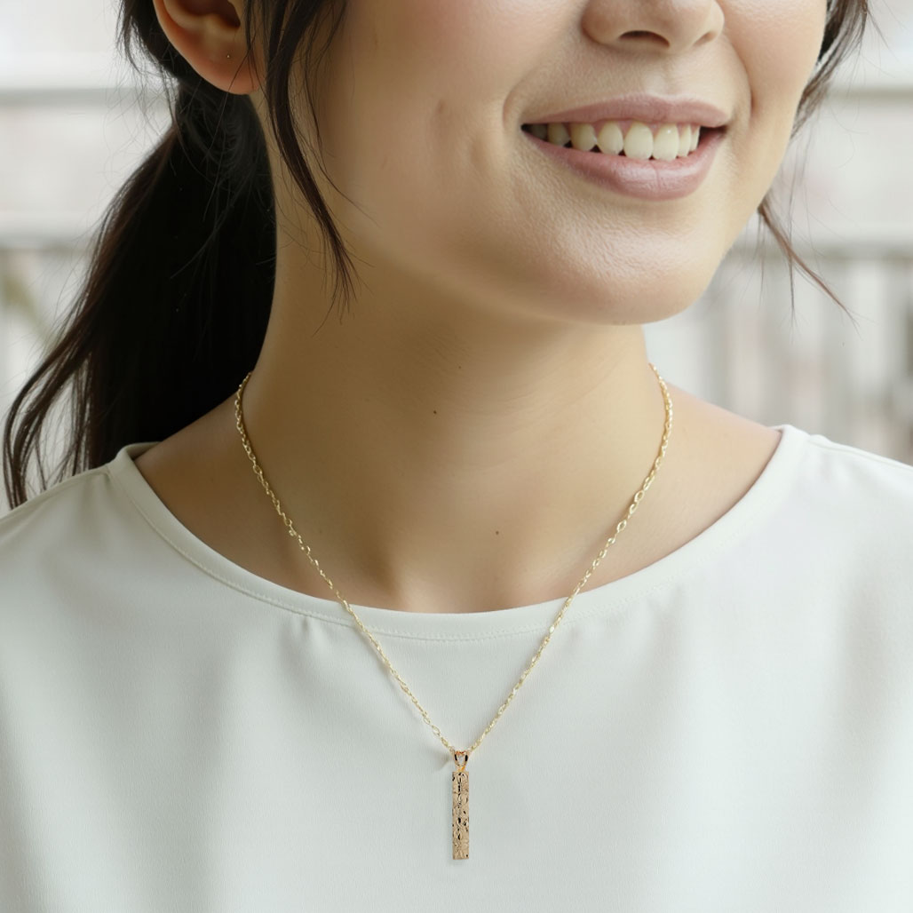 デザインは甲丸型の少し丸みのあるプレートペンダント。