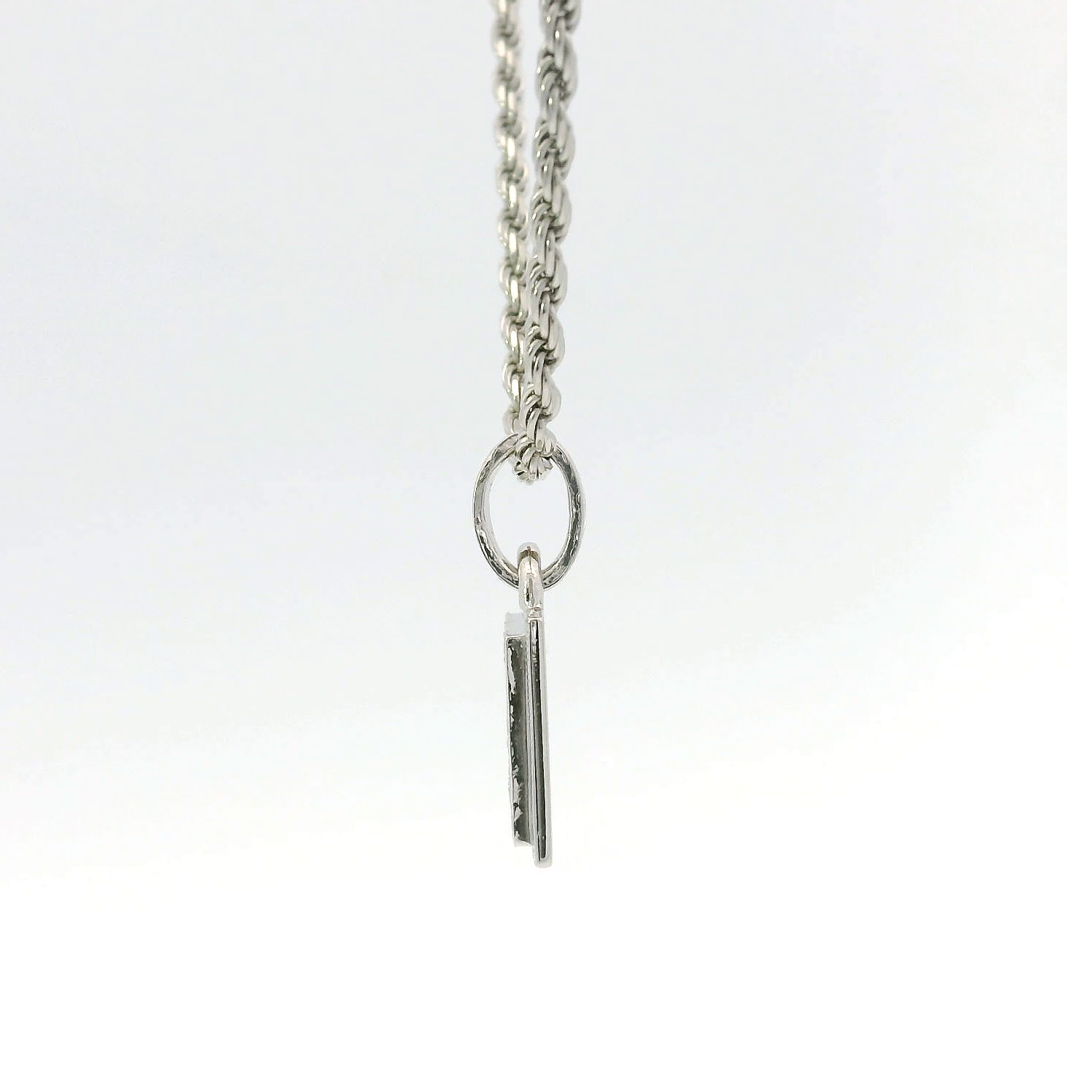 このペンダントは、トップだけでなく 、バチカン(チェーンを通す部分)にまで細密なスクロール(波)模様を彫り込んだ、妥協のない仕上がりが特徴です。