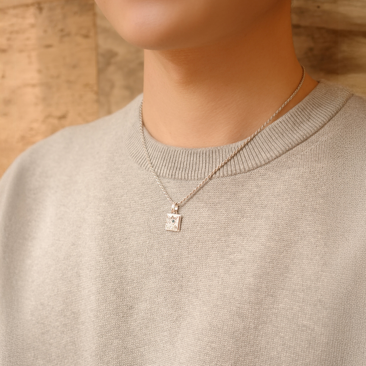 手彫りならではのシャープな輝きと立体感が、胸元で上品に、そして力強く光を放ちます。